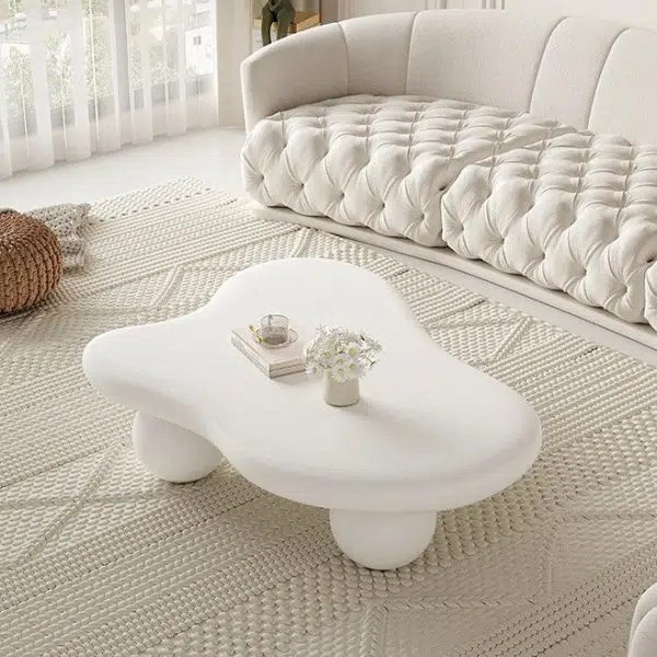 Contemporary Creative Creamy Cloud Orb Artificial Panel End Table 1-Tier For Living Room
