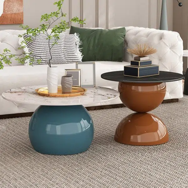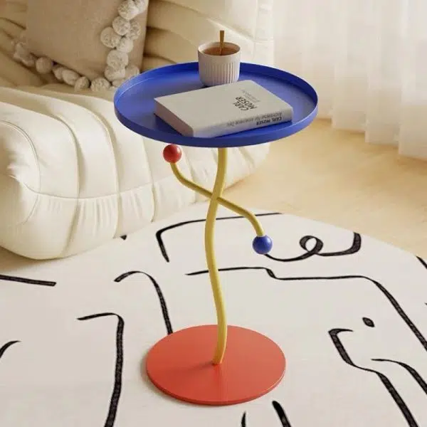 Contemporary Creative Color Blocking Iron Tray Top Distortion End Table For Living Room