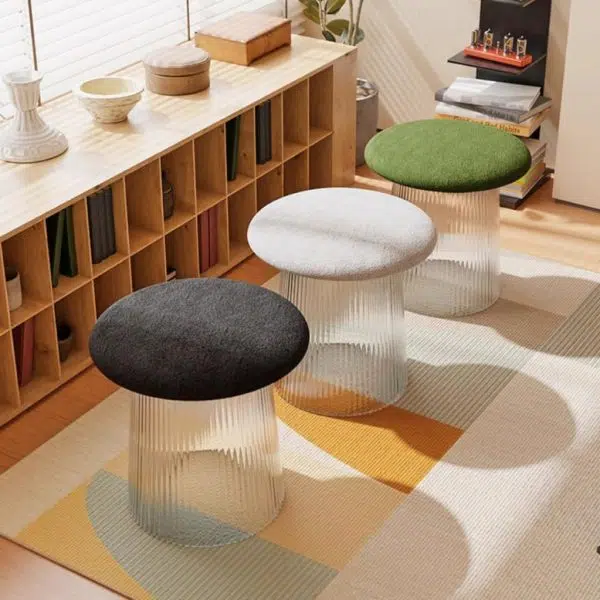 Contemporary Creative Mushroom Acrylic Lambswool Footstool Backless Armless For Living Room