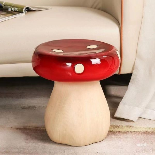 Contemporary Creative Mushroom Acrylic Lambswool Footstool Backless Armless For Living Room
