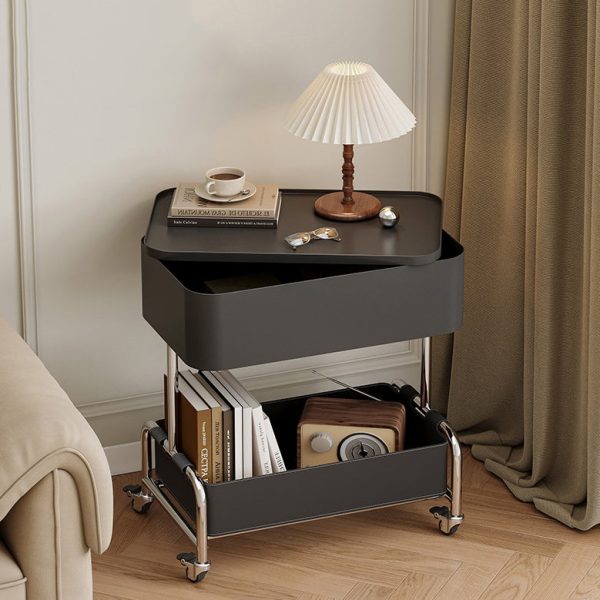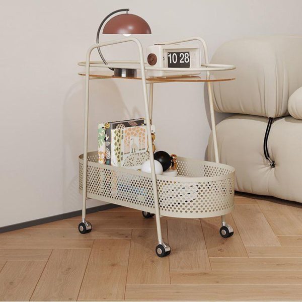 Contemporary Creative Medium-Density Fiberboard Metal Rounded Square Mobile End Table With 2 Tiers For Living Room