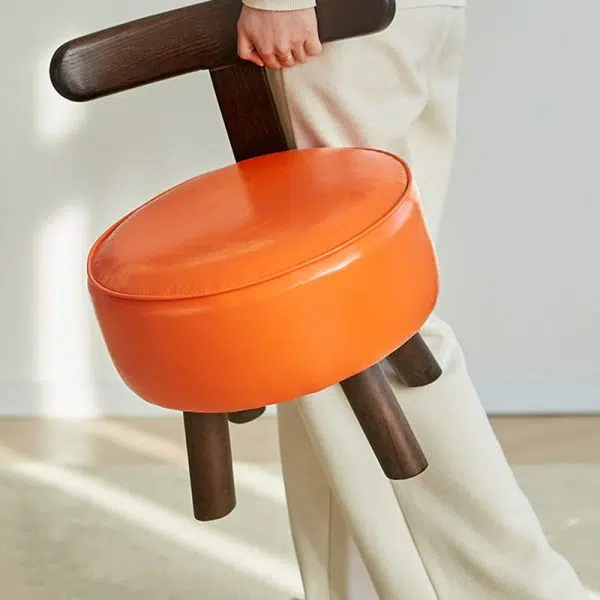 Contemporary Creative Round Rabbit Ears Swivel Lambswool Solid Wood Low Stool Backrest Armless For Living Room