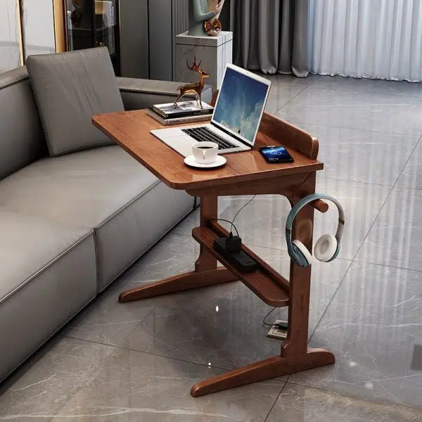 Modern Minimalist Rectangle Solid Wood Desk 2-Leg For Home Office
