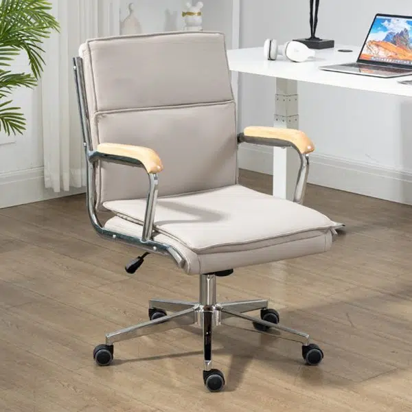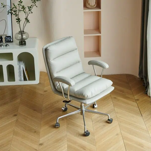 Modern Minimalist Square Upholstered PU Leather Stainless Steel Desk Chair Backrest Armrest For Home Office