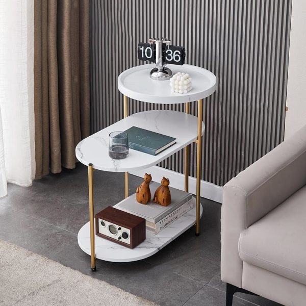 Contemporary Nordic Elliptical Round Iron Plate End Table 3-Tier For Living Room