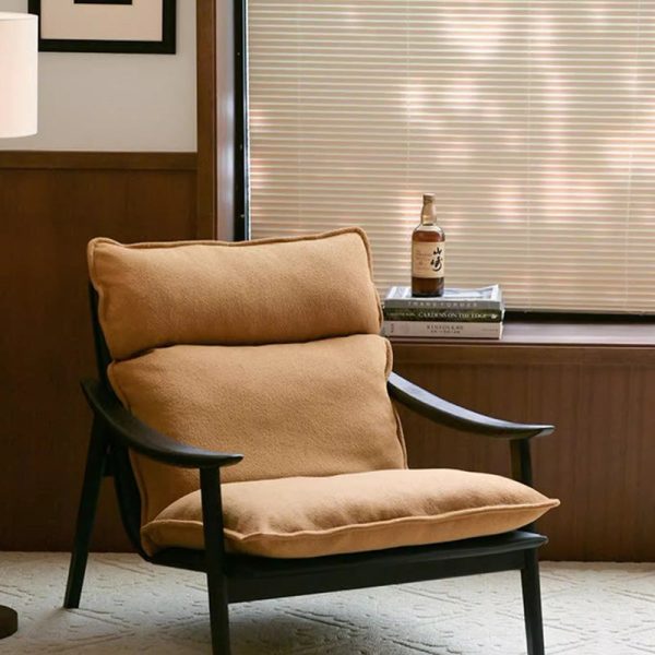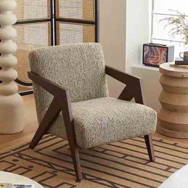 Contemporary Nordic Square Upholstered Fabric Wood Accent Chair Backrest Armrest For Living Room