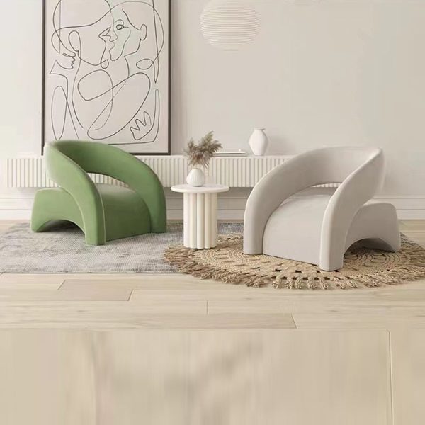 Contemporary Scandinavian Cream Curved Square Wood Lambswool Velvet Accent Chair Backrest Armrest For Living Room