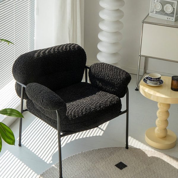 Contemporary Nordic Square Lambswool Metal Accent Chair Backrest Armrest For Living Room