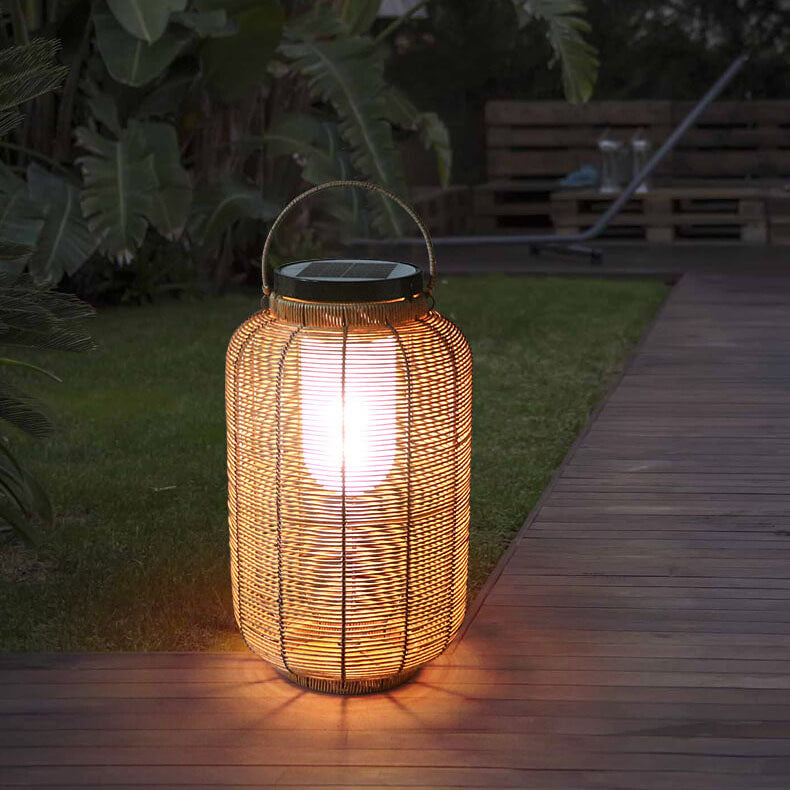 Modern Rustic Rattan Weaving Portable Outdoor Waterproof Solar LED Lawn Landscape Light