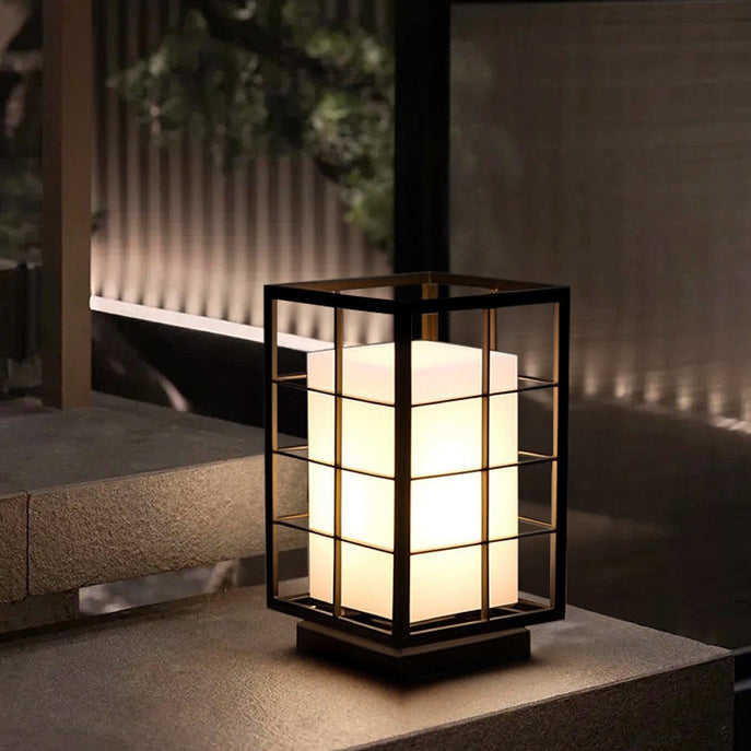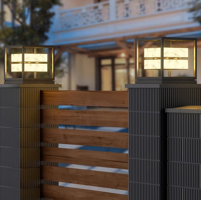 Contemporary Industrial Stainless Steel Imitation Marble Cuboid Shade LED Outdoor Post Light For Garden