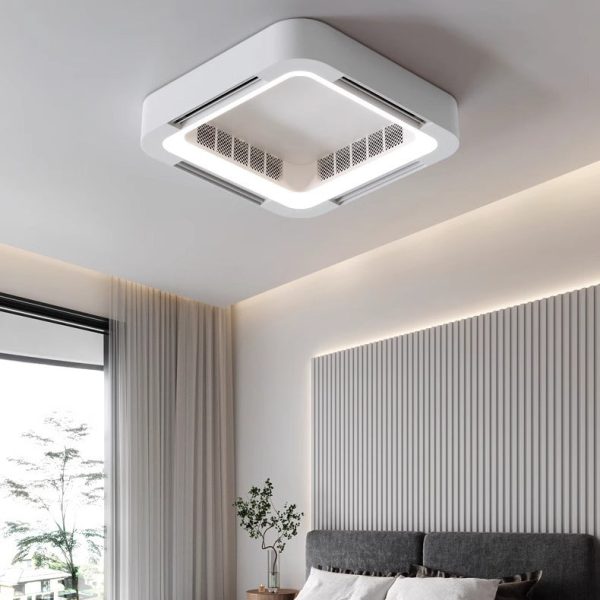 Modern Simplicity ABS Acrylic Hardware Square LED Flush Mount Ceiling Bladeless Fan Light For Bedroom