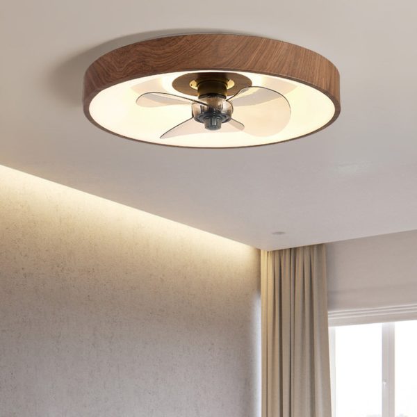 Modern Minimalist Wood Geometric LED Flush Mount Ceiling Fan Light