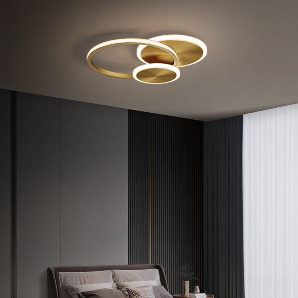 Modern Minimalist Triple Circle Full Copper Acrylic LED Flush Mount Ceiling Light For Bedroom