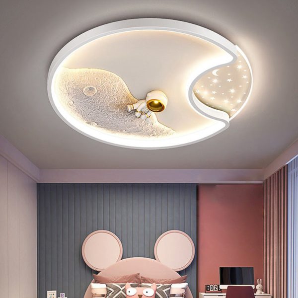 Modern Minimalist Round Moon Astronaut Iron Acrylic LED Flush Mount Ceiling Light For Bedroom