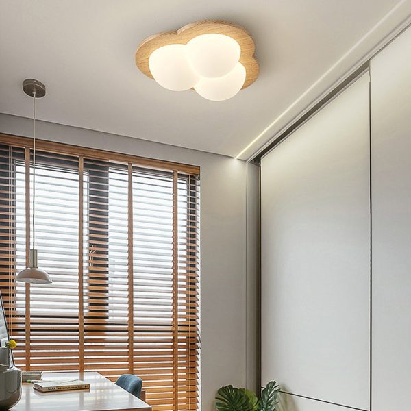 Traditional Chinese PE Rubberwood Heart Star Wave LED Flush Mount Ceiling Light For Bedroom