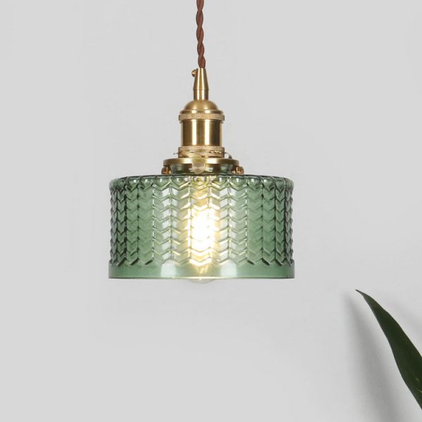 Japanese Vintage Cone Geometric Glass Copper 1-Light Pendant Light