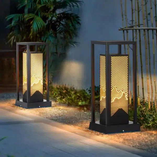 Traditional Chinese Solar Waterproof Stainless Steel Dolomite Cylinder Honeycomb LED Landscape Lighting Outdoor Light For Garden