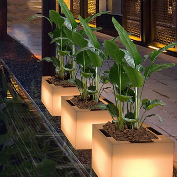 Modern Art Deco Solar Waterproof PE Square Planter LED Outdoor Light Landscape Lighting For Garden & Outdoor Patio