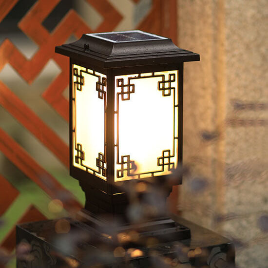 Solar Chinese Window Square Post Head 1-Light Waterproof Garden Landscape Light