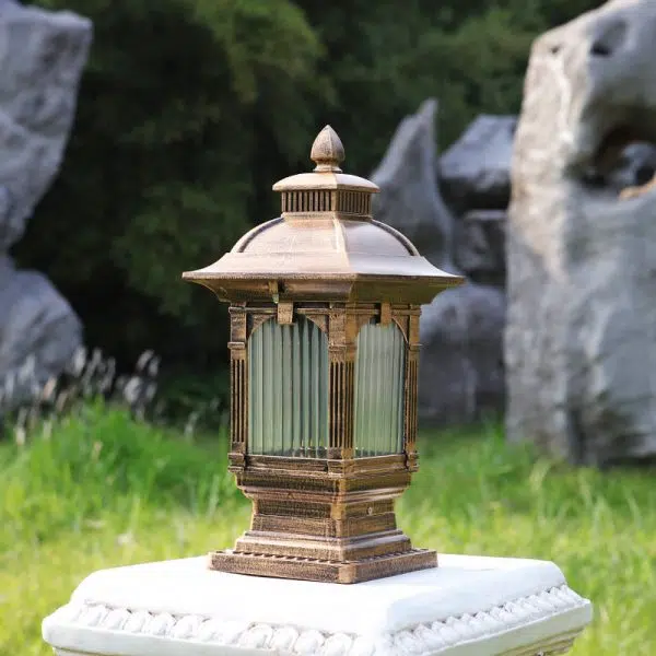 Traditional Chinese Solar Waterproof Quadrangle House Shape Aluminum LED Post Head Light Outdoor Light For Garden