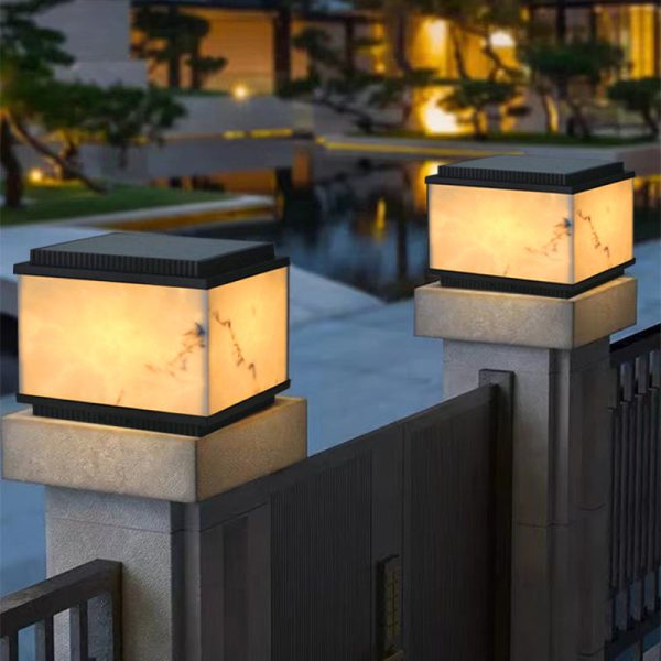 Traditional Chinese Solar Waterproof Rectangular Marble Textured Aluminum Resin LED Post Head Light For Garden