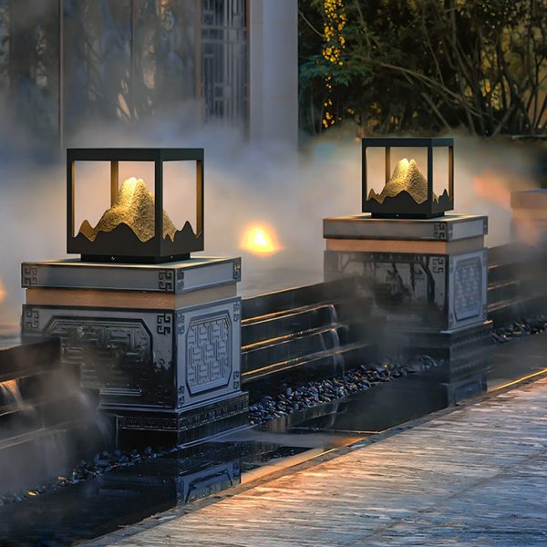 Mountain Scenery LED Waterproof Black Modern Solar Fence Post Lights