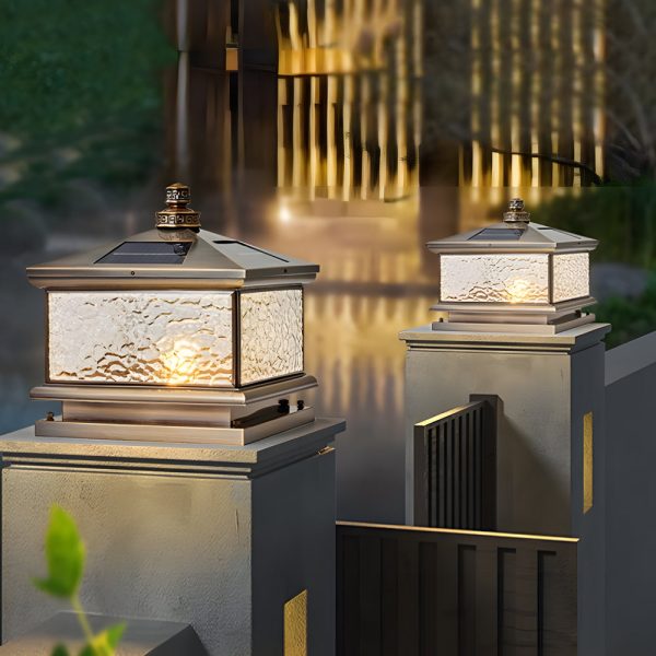 Retro Waterproof Glass Aluminum Brown Modern Solar Fence Post Lights