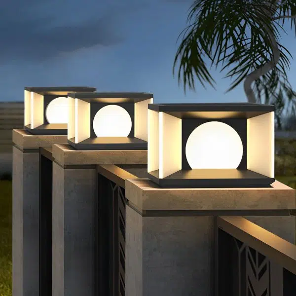 Square Metal Solar Garden Light LED Outdoor Light Post Waterproof Fence Column Head Lamp Pillar Light