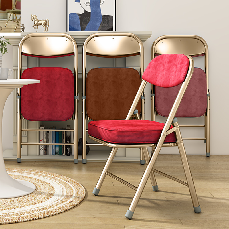 Contemporary Retro Foldable Corduroy Metal Square Desk Chair With Backrest For Study Or Home Office