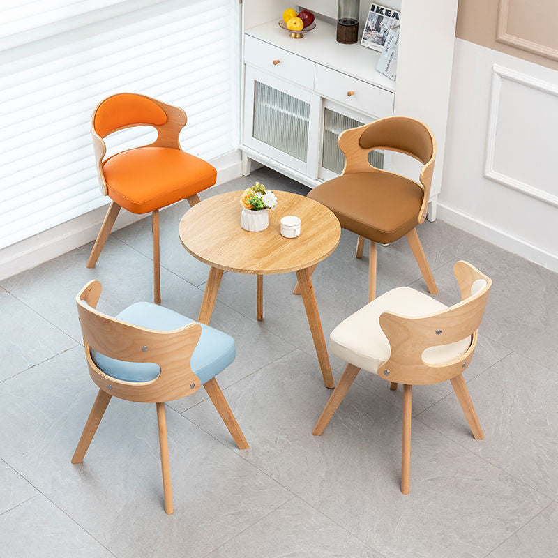Contemporary Simplicity Curved PU Leather Veneered Solid Wood Height Adjustable Swivel Desk Chair Casters For Home Office
