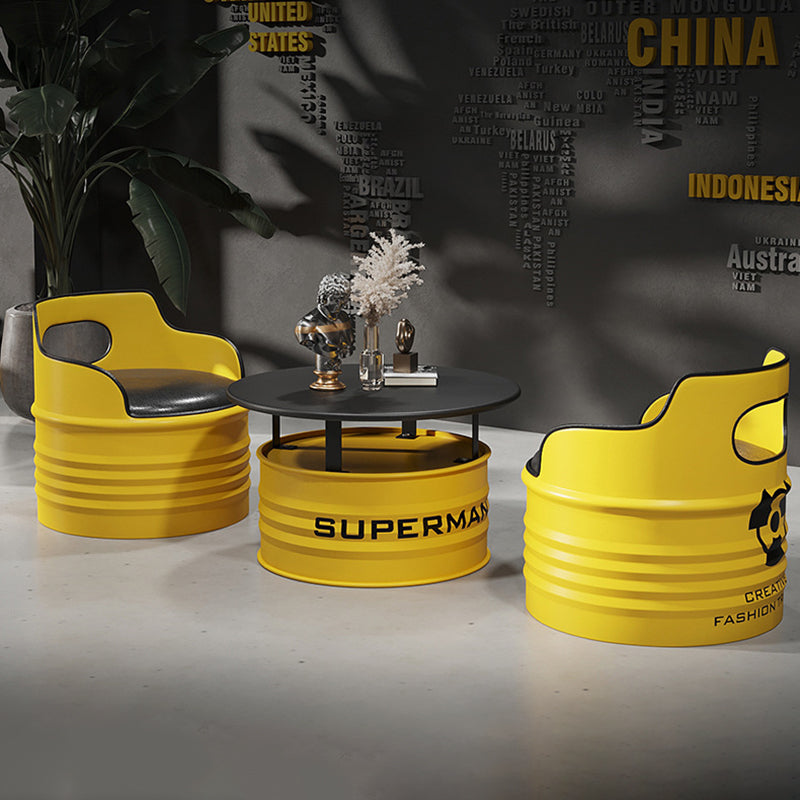 Contemporary Industrial Iron & PU Leather Round Accent Chair For Living Room And Bedroom