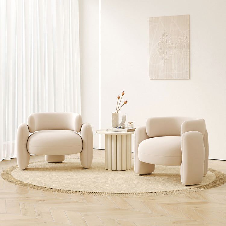 Contemporary Nordic Lambswool Curved Single Sofa With Ergonomic Design For Bedroom, Living Room