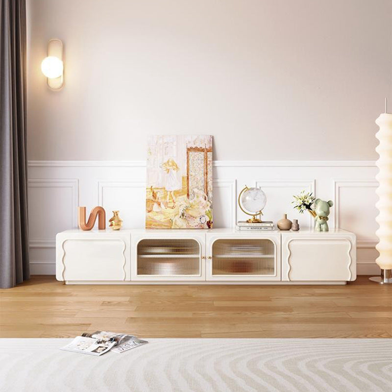 Traditional French Board Glass Wood Rectangular TV Stand 2-Tier Storage Extendable For Living Room