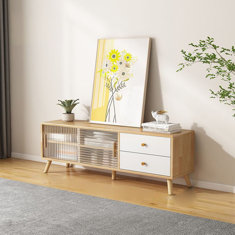Modern Minimalist Rectangle Solid Wood Glass TV Stand 2-Drawer For Living Room
