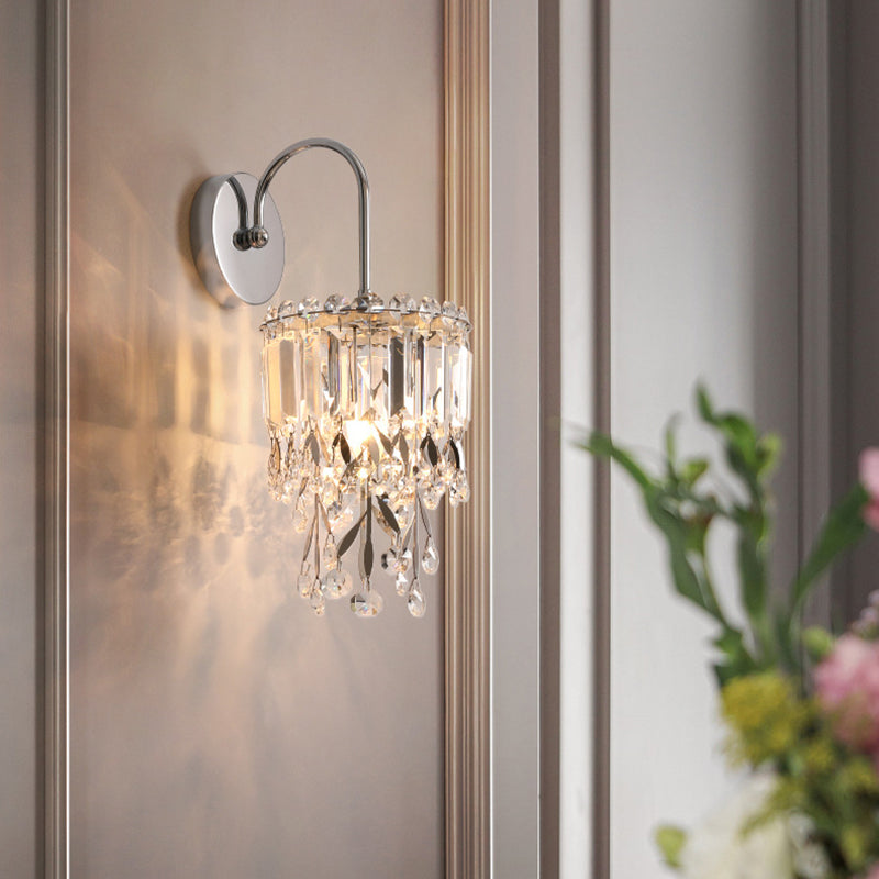 Contemporary Luxury Crystal Tassel Half Post 1-Light Wall Sconce Lamp For Living Room