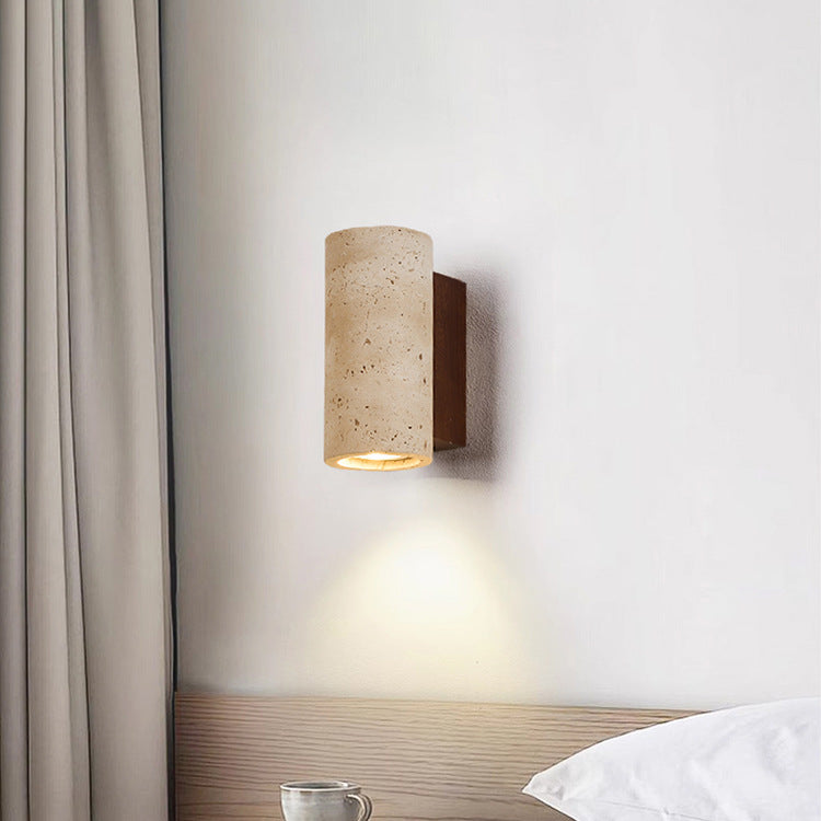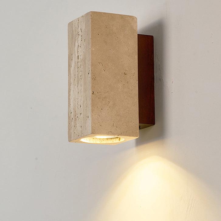 Traditional Japanese Square Cylinder Rectangle Yellow Travertine Solid Wood 1-Light Wall Sconce Lamp For Living Room