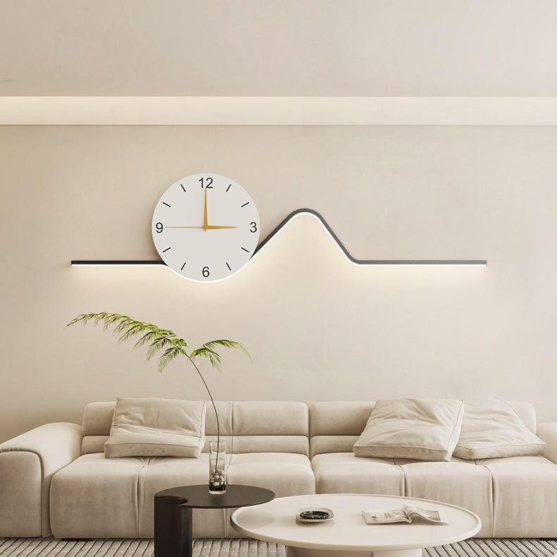 Contemporary Creative Iron Acrylic Line Clock LED Wall Sconce Lamp For Living Room