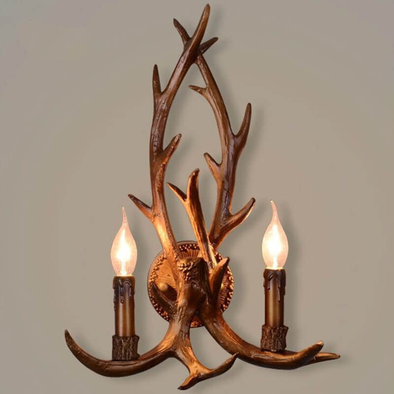 Industrial Resin Retro Antler 2-Light Creative Wall Sconce Lamp