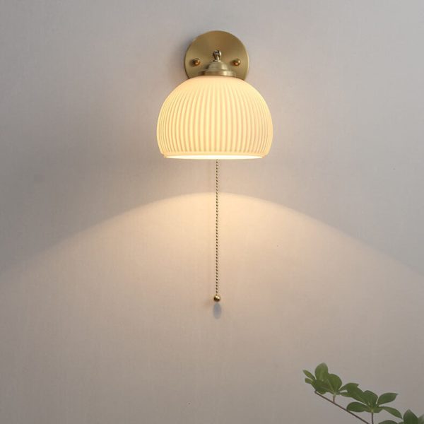 Nordic Striped Milk White Glass Brass 1-Light Pull Cord Wall Sconce Lamp