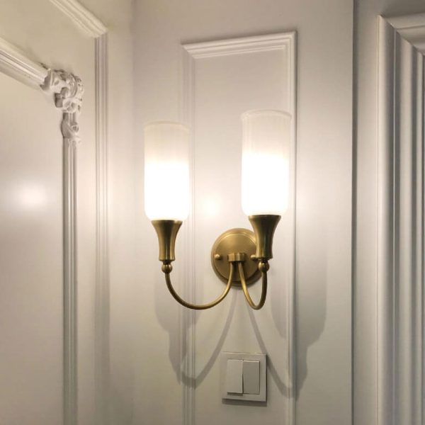 Vintage Rustic Brass Glass 1/2 Light Wall Sconce Lamp