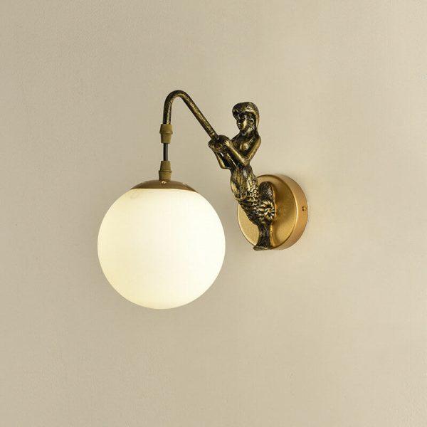 Vintage Rustic Mermaid Orb 1-Light Wall Sconce Lamp
