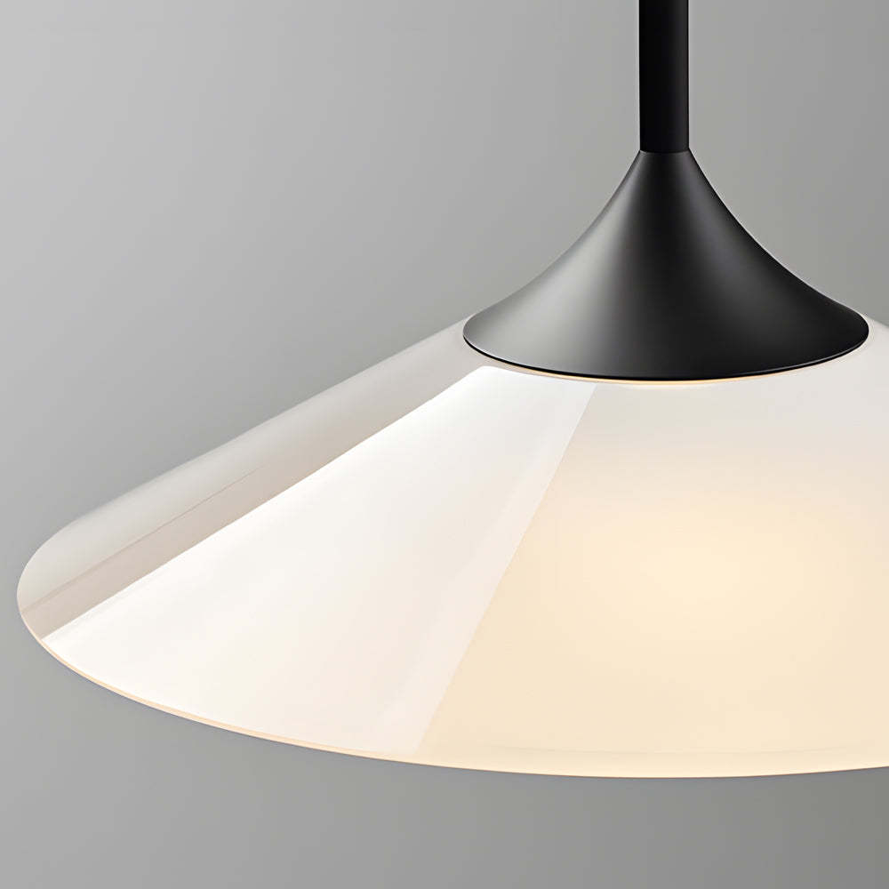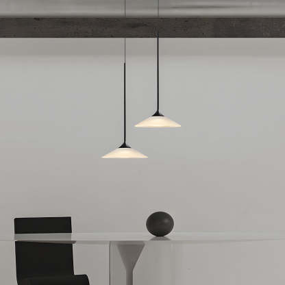 - Uplifting artistic feel lights up any space with this small white acrylic LED pendant light. A striking profile delivers charming effects in a fixture designed for maximum appeal. This modern LED pendant light creates a sleek industrial style with a white finish acrylic shade and a black aluminum lamp and canopy. An acrylic diffuser offers soft lighting effects for bright illumination. Enjoy energy efficiency and minimalist contemporary design in this pendant.
