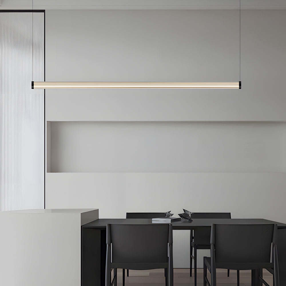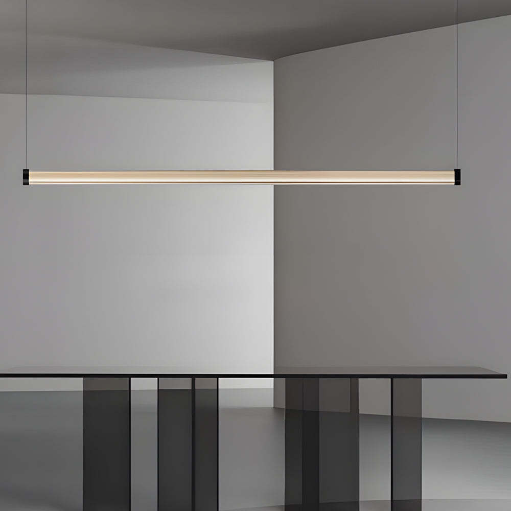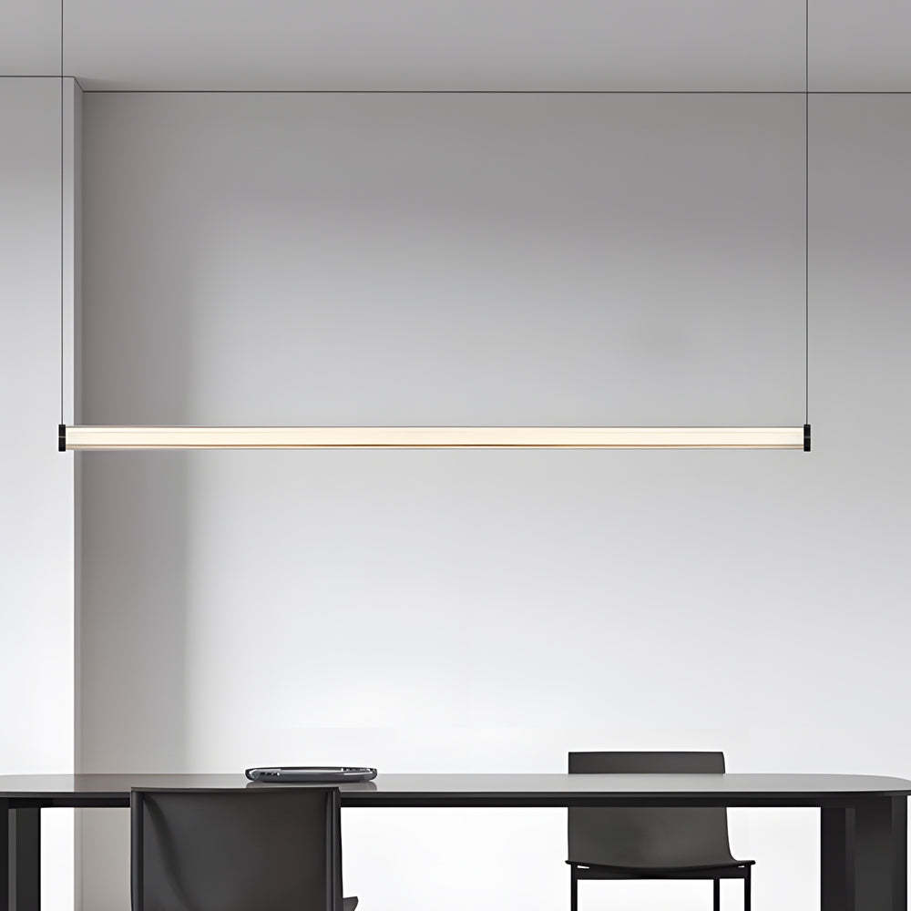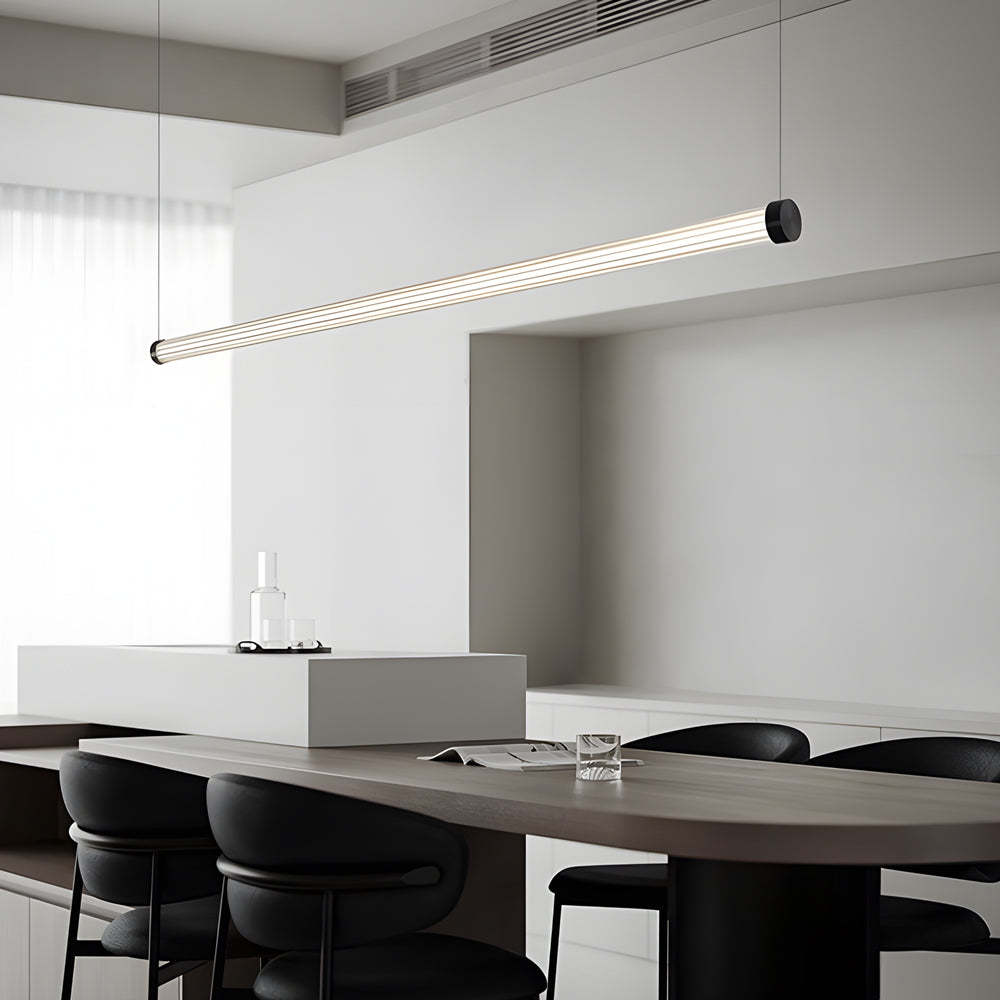 - The linear LED pendant light will add artistic style and strong downlighting to your modern home space, and it comes in a textured glass finish. With modern minimalism and versatility with their energy-saving LED island pendant light. This suspended, linear pendant has an all-sided construction that offers ambient lighting when installed. It comes in a black finish that will enhance your modern home with its stunning simple yet elegant beauty.