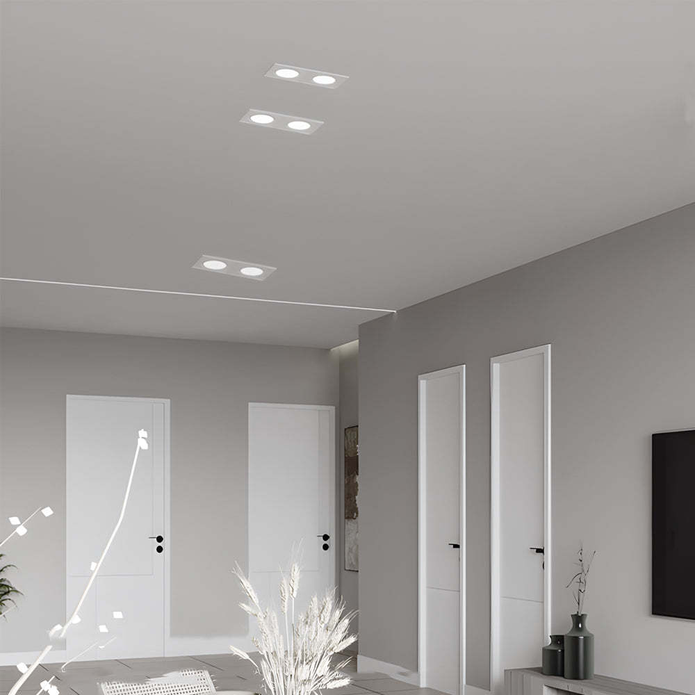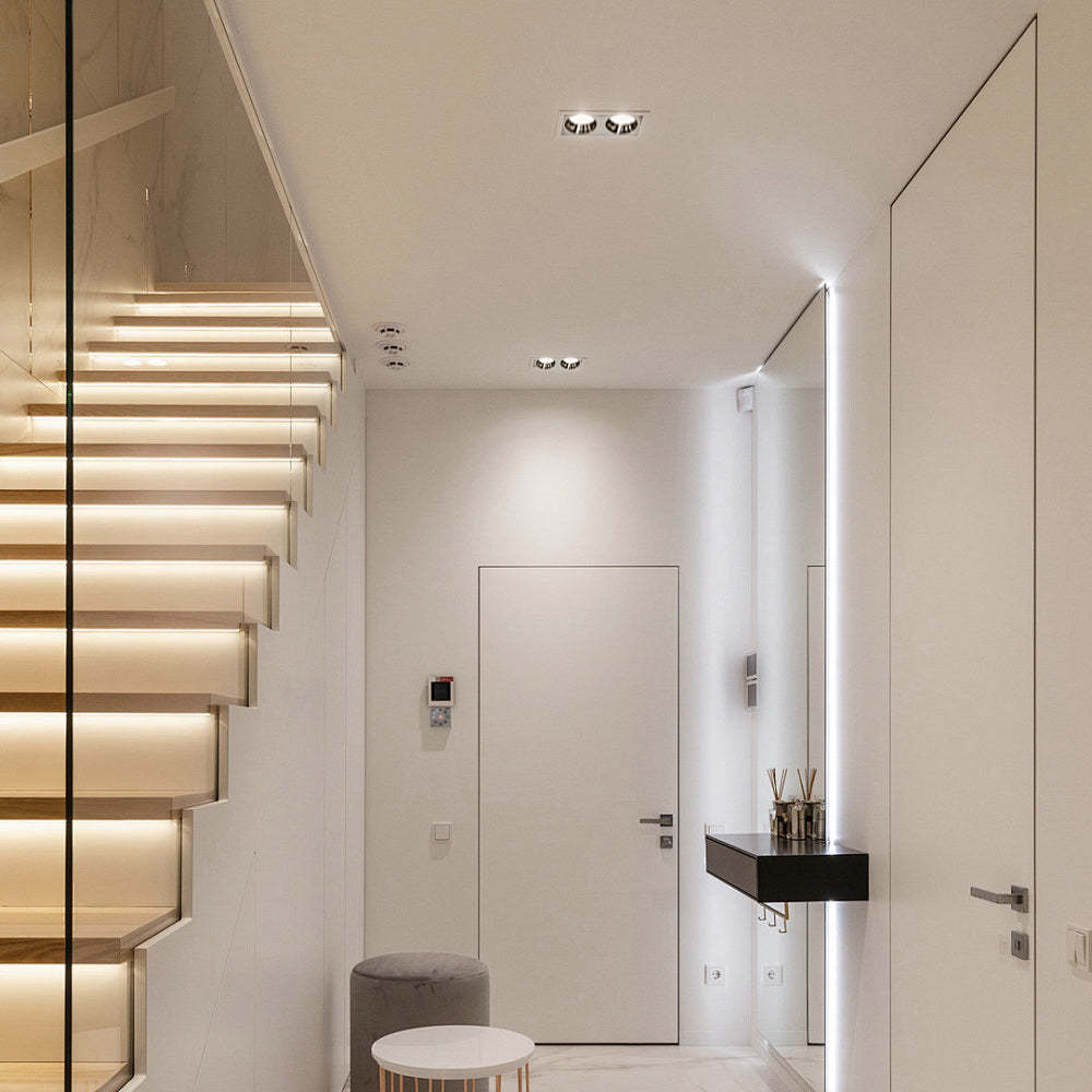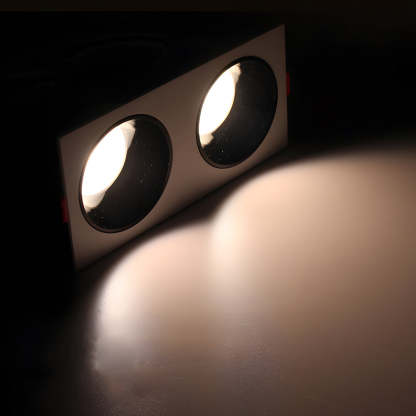 - Let this two-head energy-saving LED recessed downlight be the choice solution for various lighting needs. This 2-head LED downlight with Ra95 light index features a white or black finish trim with the same color flange to meet your lighting tastes or needs. You'll love it as the solution for most retail, hospitality, and commercial applications.