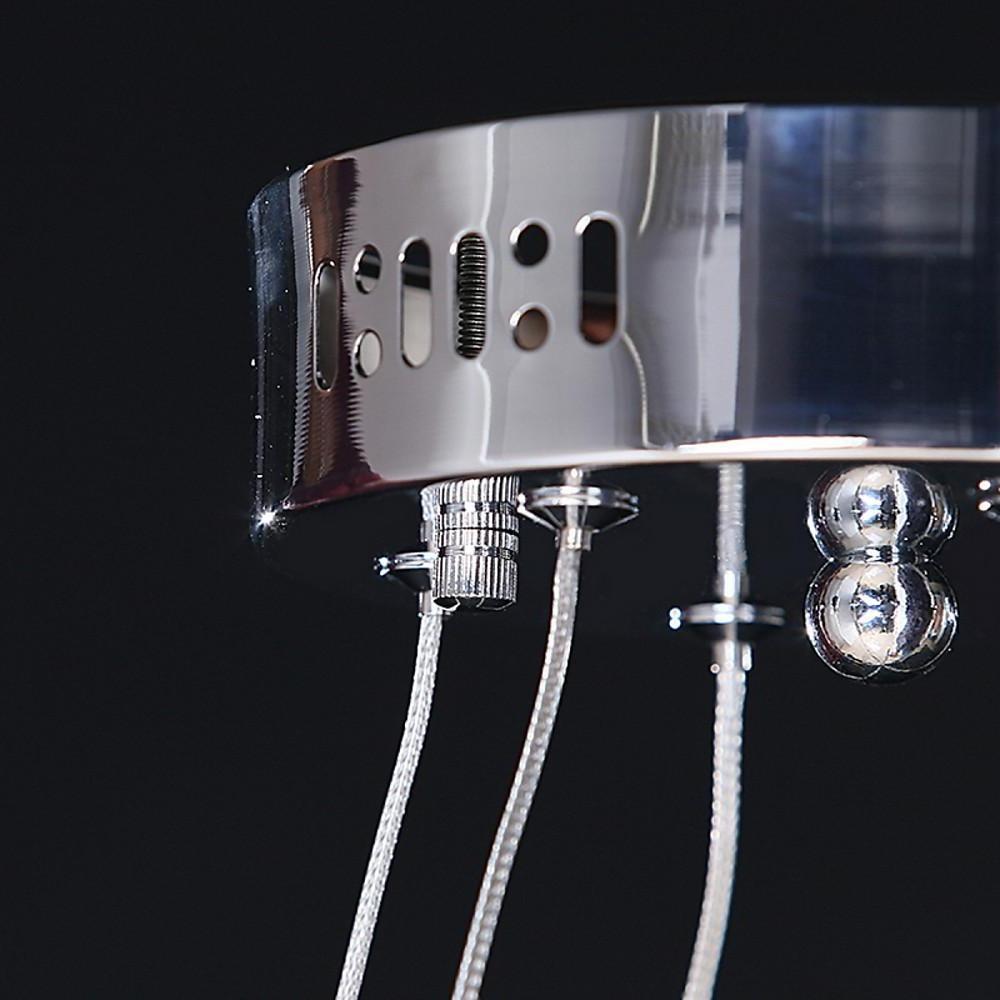 - This luxurious crystal chandelier is designed in the shape of two rings. with a very elegant and classic appearance. Simple but never outdated. When you turn on the lamp. the crystal in the outer ring will reflect the light of the bulb. which is very dreamy and romantic. Metal materials and electroplating technology make this chandelier delicate and durable. When you turn on the light. you can see a very beautiful lighting effect on the wall.