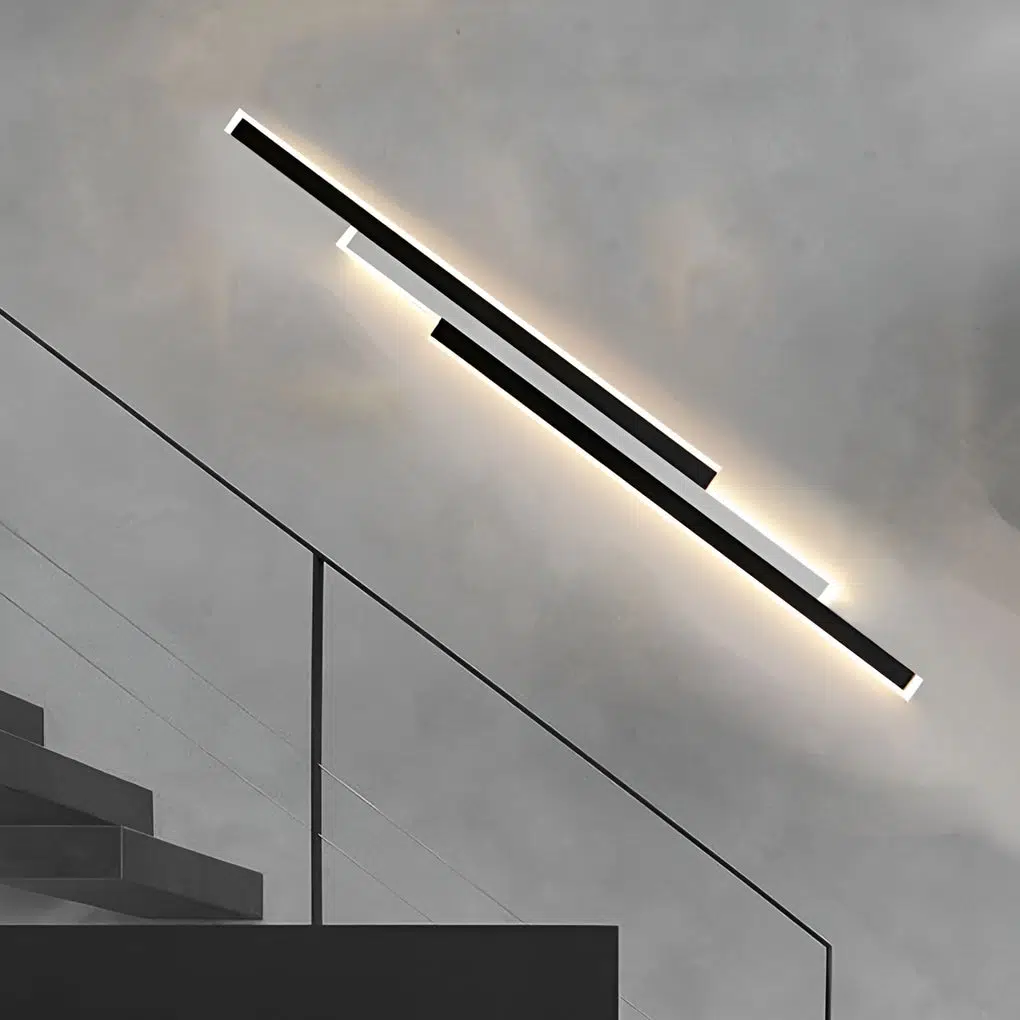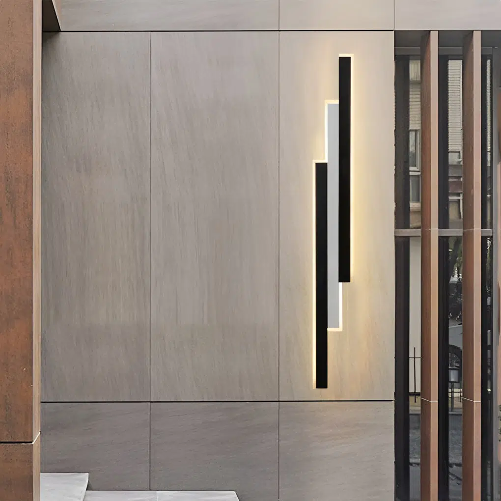 Add a industrial touch to outdoor porch and patio areas with this 1 white and 2 black liner combined LED wall lights. The design is composed of three long rectangular outline light bar that is integrated with LED and can be installed vertically.