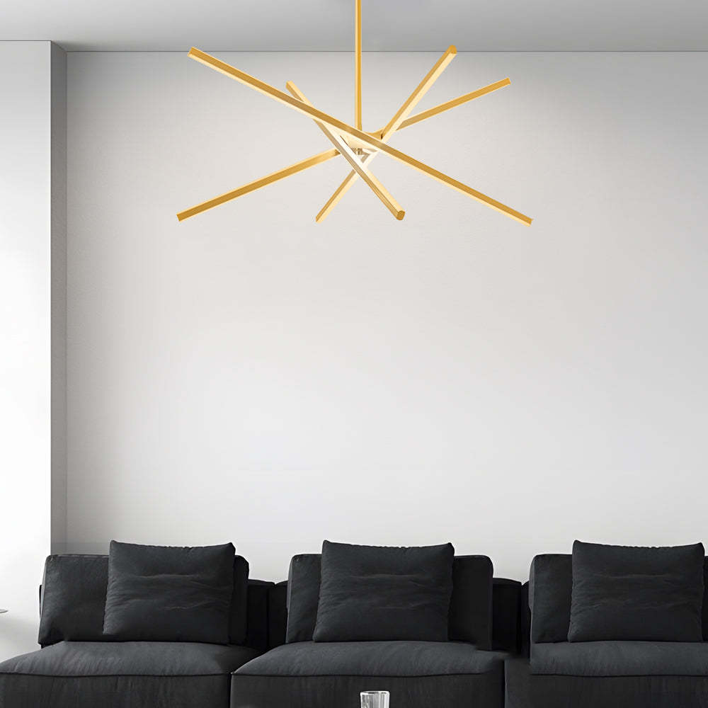 - ?This 4-light LED Sputnik linear chandelier light offers an eye-catching modern style for dining rooms, entry areas, and kitchen spaces. It features a silhouette with striking angles created by 4 metal arms and lights. It comes with a gold and black finish with LED lights in each arm.
