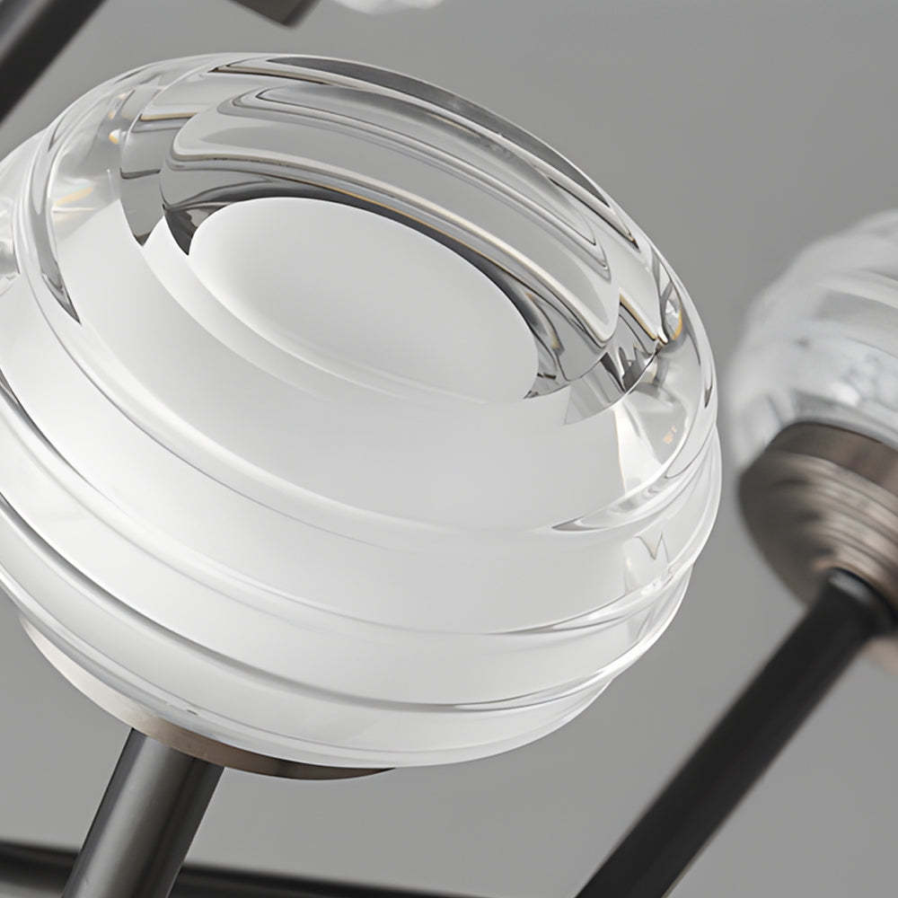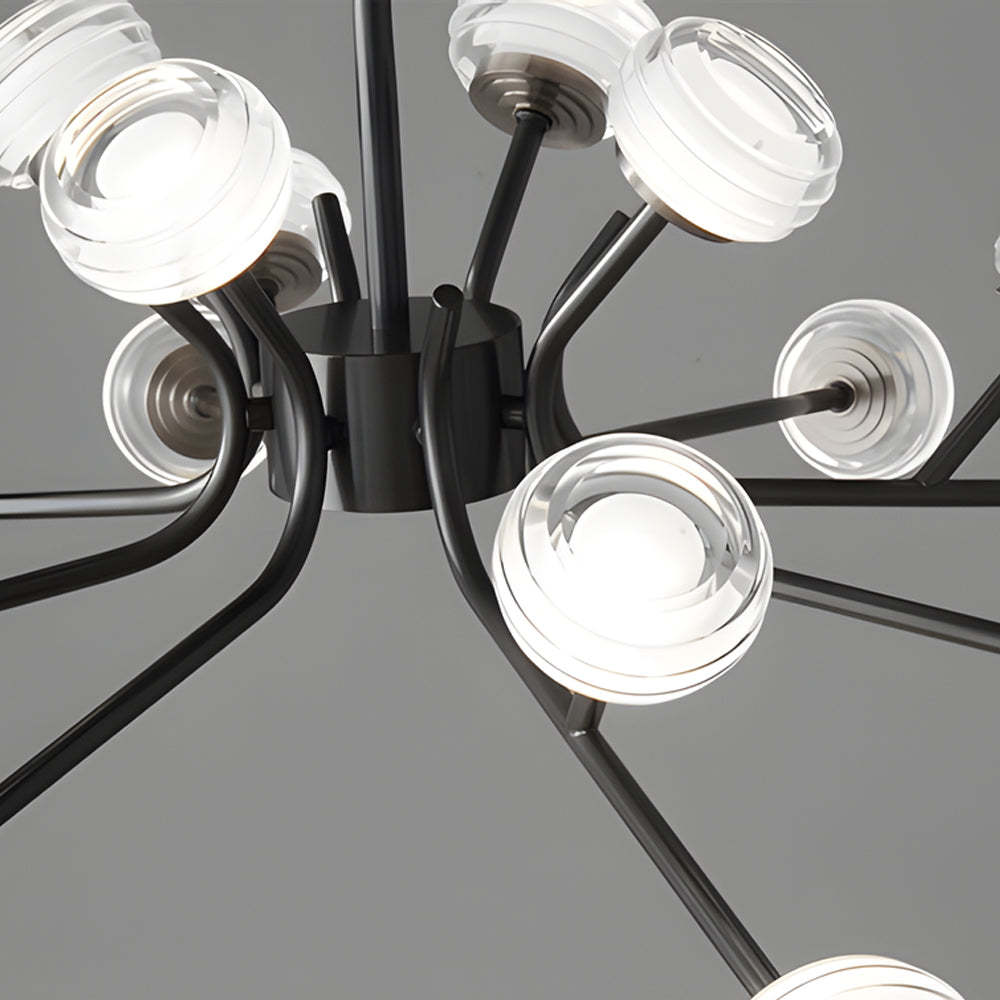 - Each black arm of the pendant light is decorated with round acrylic shades, creating a dreamy and beautiful visual appeal. The meticulous design of these acrylic accents improves the chandelier's charm, refracting light perfectly to create a dazzling lighting ambiance. The 9-light and 16-light options ensure ample light distribution, making it both a functional and decorative lamp in your home. The black finish frame and round canopy add definition to the light fixture, making it ideal for a variety of settings.