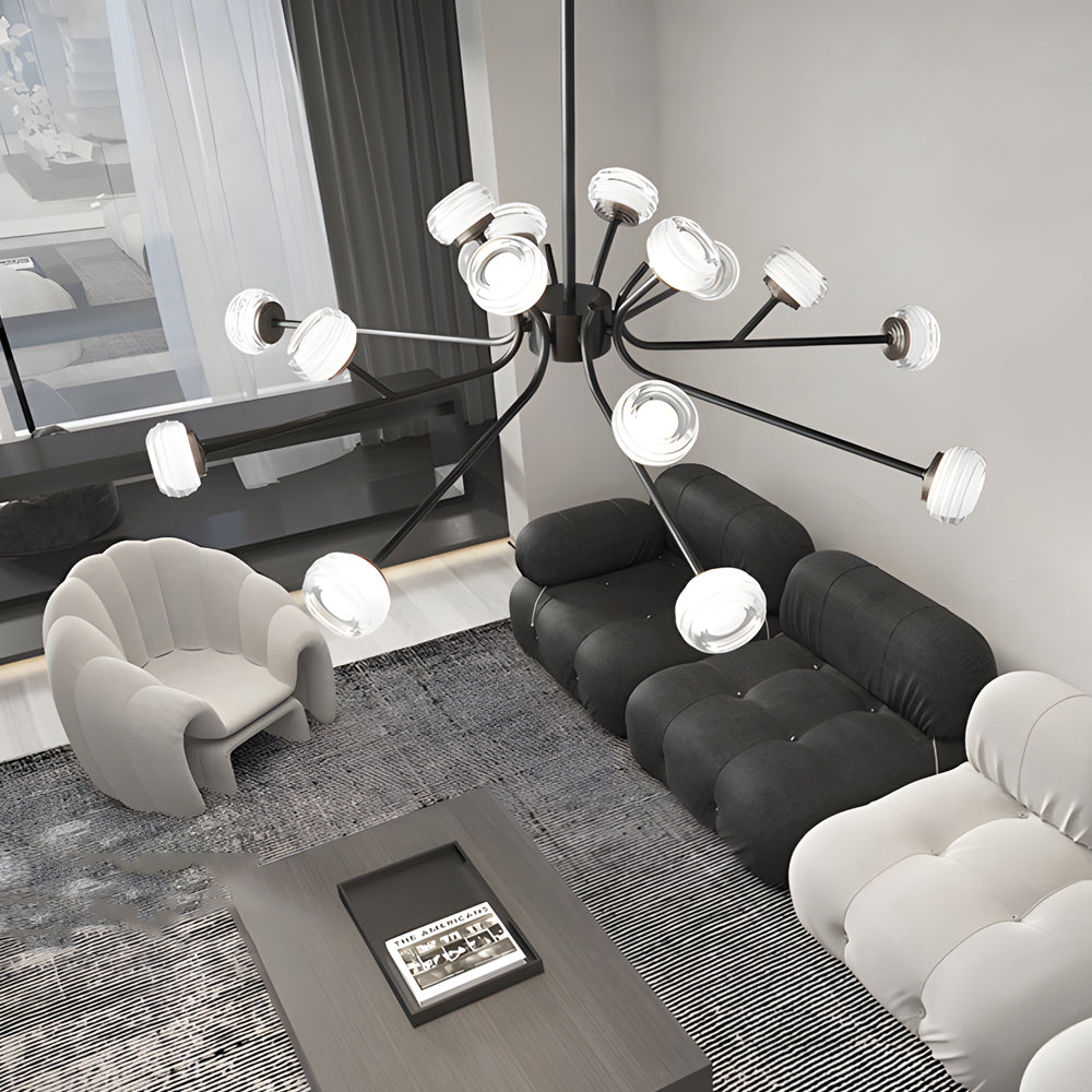 - The smooth streamlined shape brings a fresh view to this modern Black LED Sputnik Chandelier. Crafted from quality copper and clear UV acrylic. this fixture features a modern Sputnik silhouette. with black curved arms gracefully extending from a central rod in all directions.