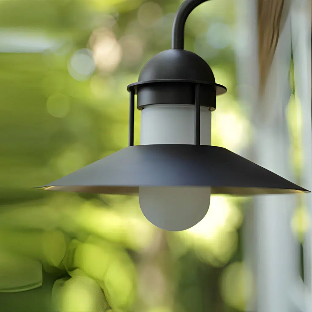 - This exterior light uses iron and glass as the main material. which ensures the light’s sturdiness. Its unique glass shade creates a gorgeous light effect. Home is a warm harbor. and the outdoor light fixtures wall mounts is a beacon for the way.